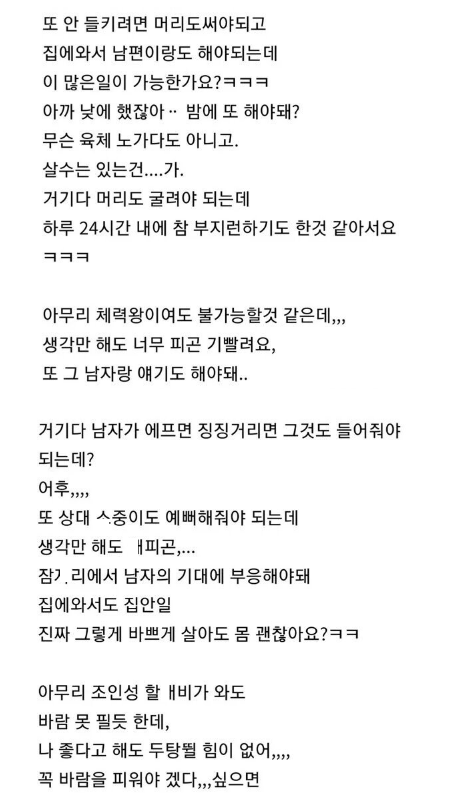 바람 피는 여자들의 체력이 진심으로 궁금한 여자