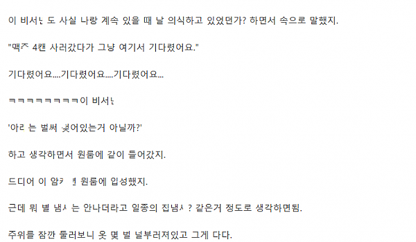 독ㅅ실서 매일 보던 암ㅋㄴ 조ㄱ 정ㅂ한 이야기
