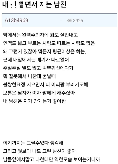 내 거ㄷ한 ㄱㅅ을 ㅃ면서 ㅈ는 남친