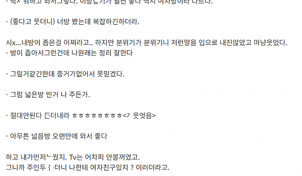 하우스쉐어 해주던 중국 여집주인한테 ㅁ힌 세입자 이야기