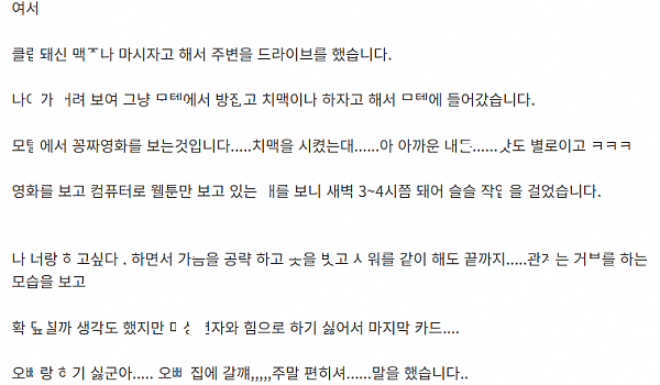 동네 ㄷ.r 방 레ㅈ 하소연 들어주다가 ㅂㅈ 벌ㄹ줘서 ㄲ아버린 이야기
