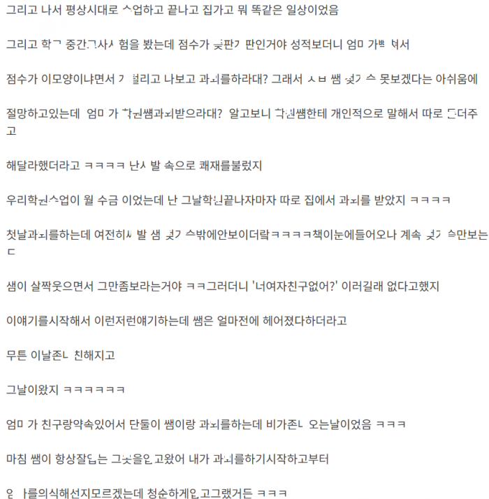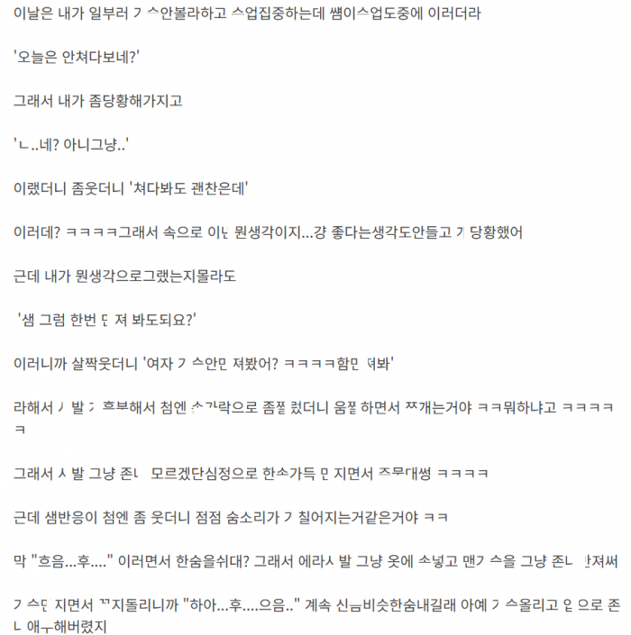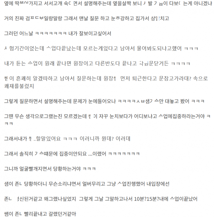 ㄱ딩때 학ㅇ선ㅅ님 ㄱㅅ 보고 ㄲ려서 ㅅㅅ하고 ㄸㅁ은 썰