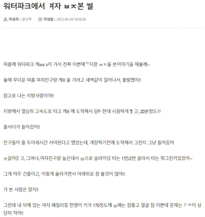 여친이랑 워터파크 갔다가 여자 ㅂㅈ 본 이야기