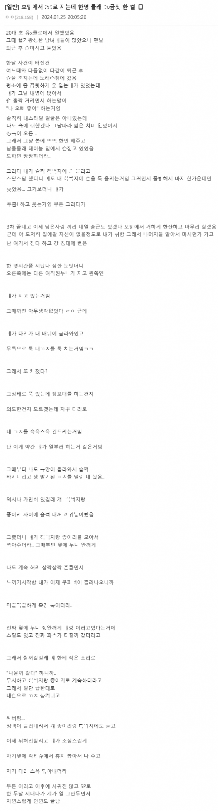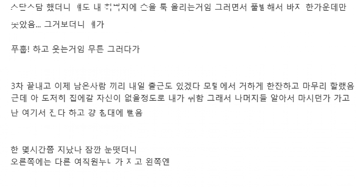 ㅁㅌ같이 간 알ㅂ녀 다ㄹ 사이에 ㄲㅊ ㄲ워서 몰래 ㄸ친 썰