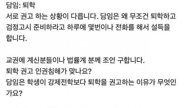 담임 교사의 퇴학 권유