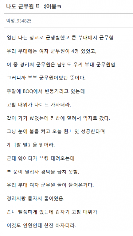 남ㅍ이랑 같이 일하던 유ㅂ녀 여군무원 ㄸㅁ은 장교