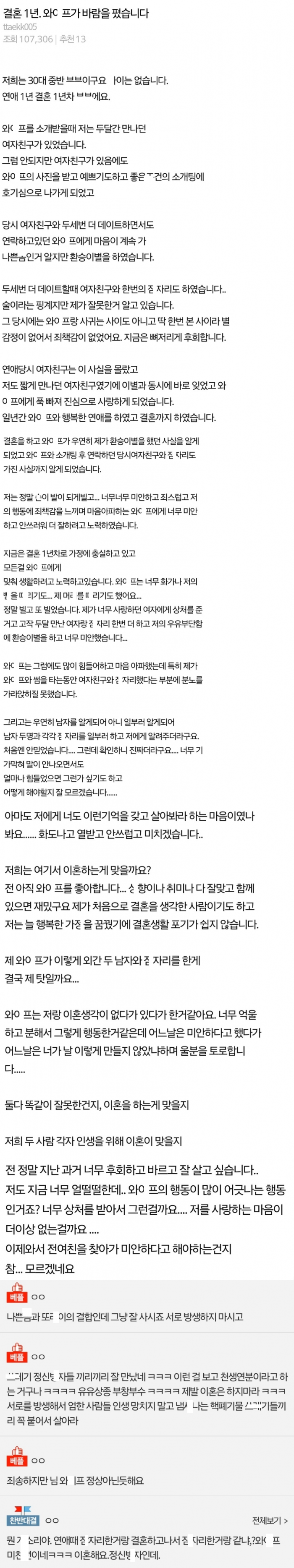 이쁜 마ㄴ라가 다른남들한테 ㅂㅈ 벌ㄹ주고 다닌걸 말해줬는데..