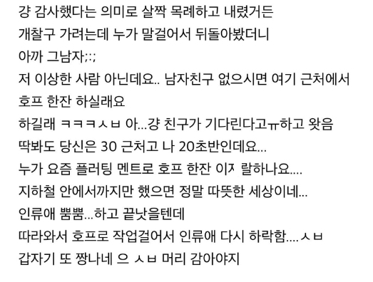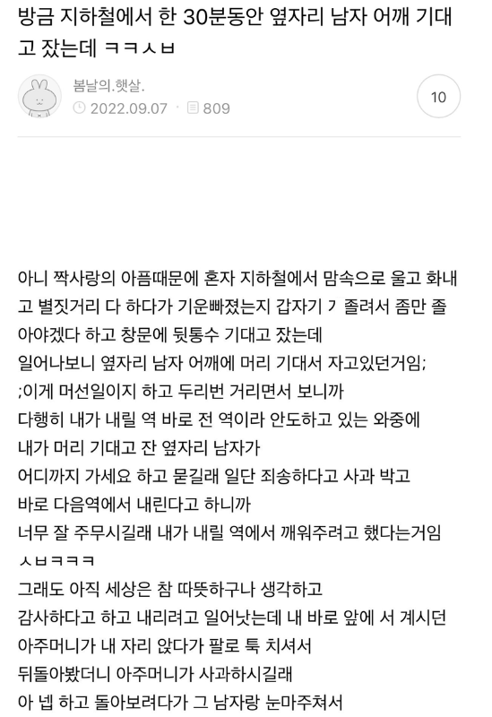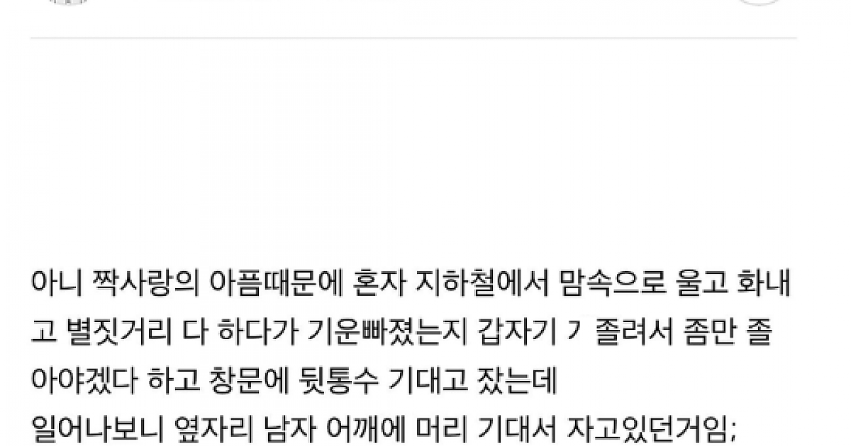 방금 지하철에서 옆자리 남자 어깨에 기대고 잤는데..