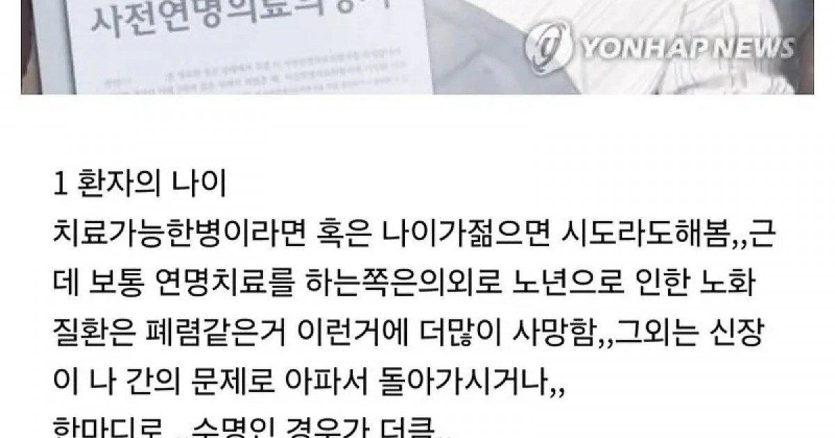간호사 : 웬만하면 연명치료 받지마라