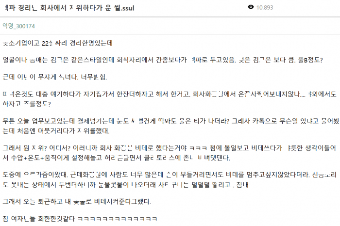 회사에서 ㅈㅇ 하다가 운 회사 ㅅㅅ파ㅌ너 경리 썰