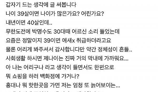 39살 어린나이다 vs 아니다
