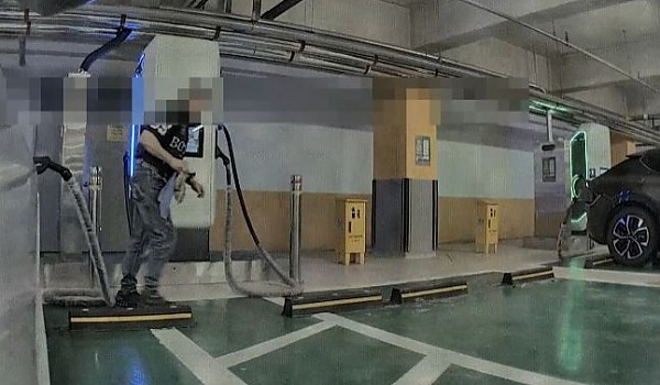 충전 중인 전기차 케이블 일부러 밟고 가는 노인
