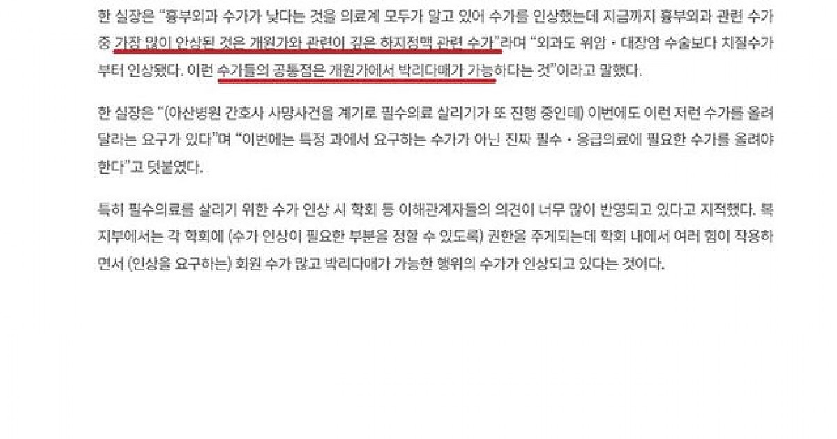"수가"를 올려도 필수과 의사가 여전히 부족한 이유