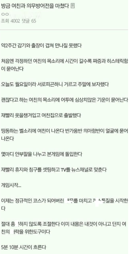 여친과의 의무방어전 생생한 후기