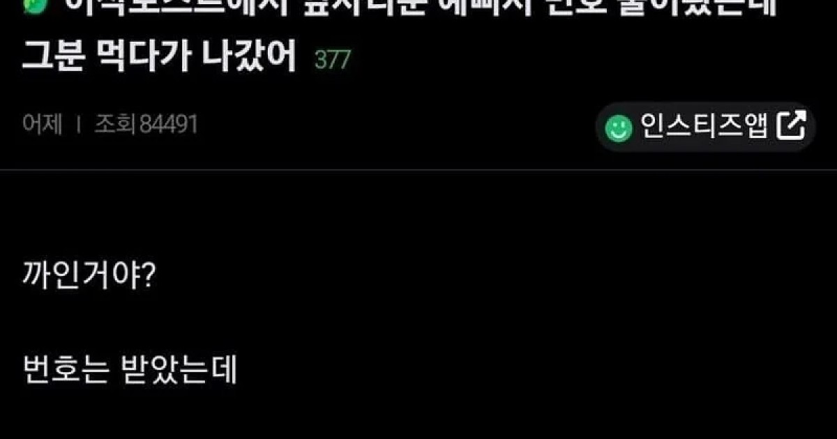 이삭토스트에서 여자한테 번호땄는데 여자 나감