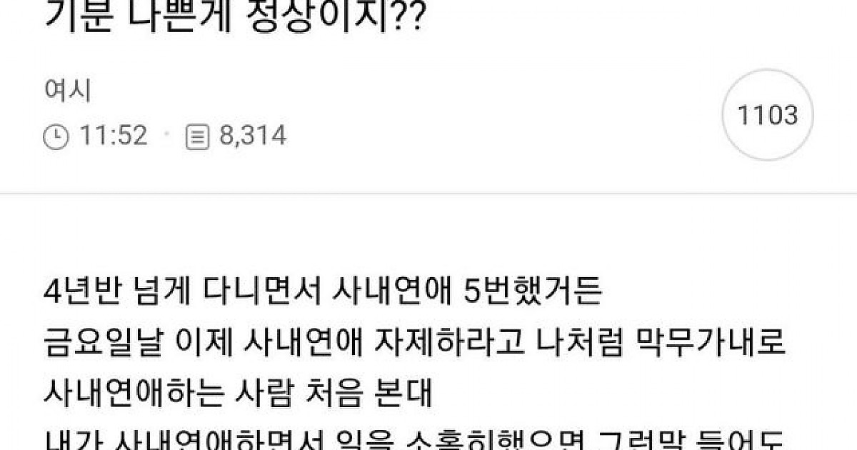 사내연애 5번해서 선배한테 경고 받은 여자