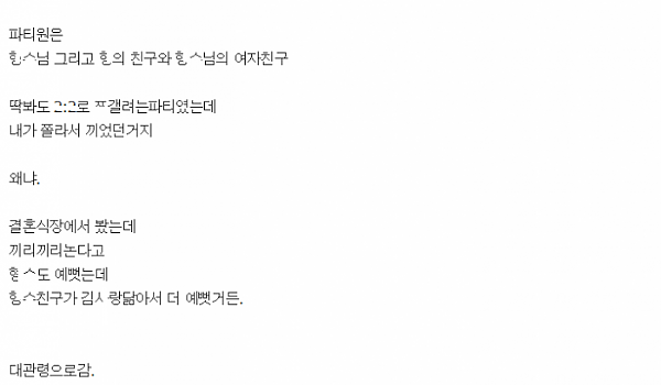 회사 ㅅㅅ파ㅌ너의 결혼식에 간적 있는데..