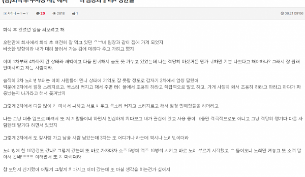 회식 후 주차장 계단서 유ㅂ녀 팀장 ㅈ내ㅅ정한 썰
