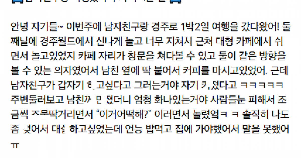 남친이랑 여행 갔다가 ㄲ려서 카ㅅ한 썰