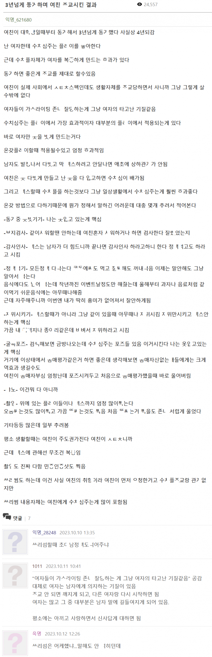 3년 넘게 동ㄱ하며 여친 조ㄹ 시킨 결과