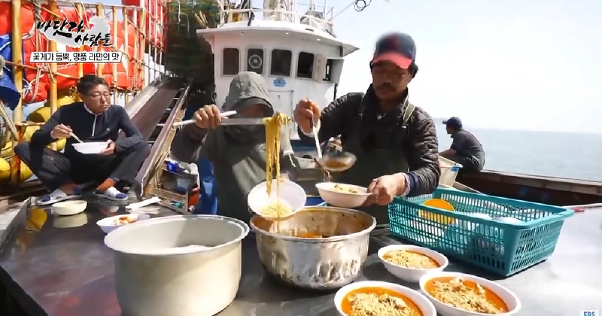 배 위에서 얼큰하게 끓여 먹는 꽃게라면