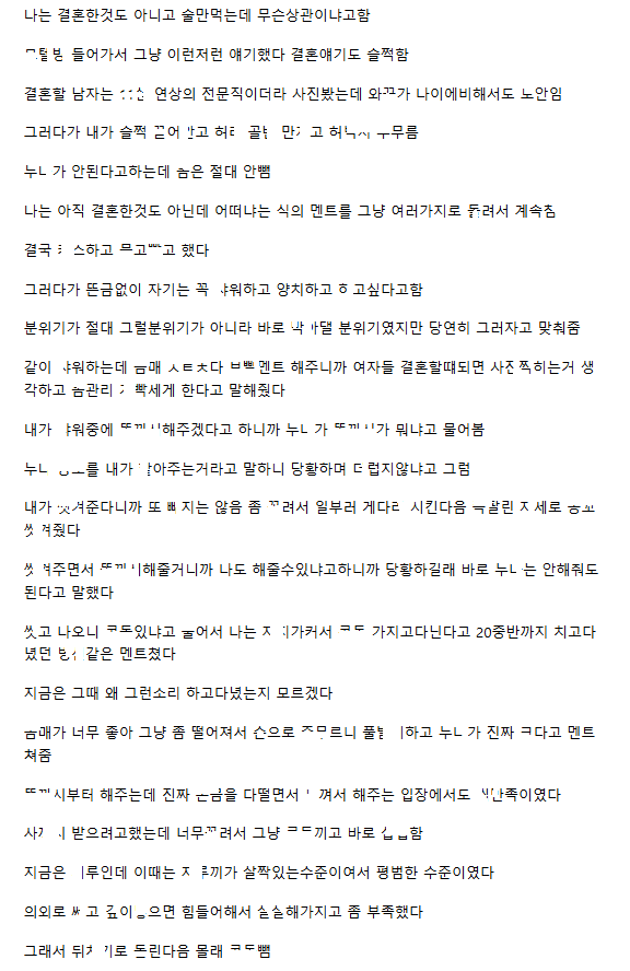 결혼 한달 남은 여자와 시~일컷 노ㅋㅈㅆ로 ㅅㅅ한 이야기