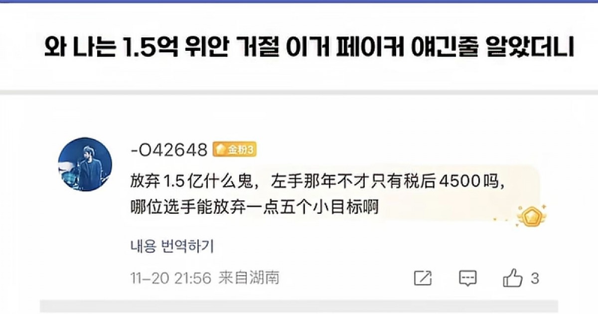 1.5억 위안 제안 거절한 낭만 프로게이머의 정체ㄷㄷ