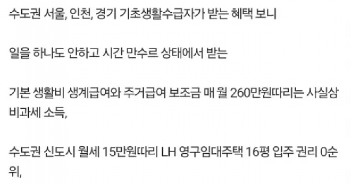 수도권 기초생활 수급자 근황
