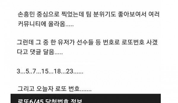 손흥민 골넣고찍힌 등번호로 로또산 사람