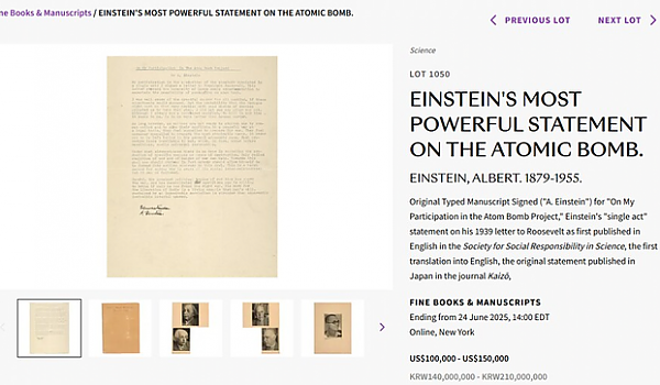 아인슈타인이 일본에 답장한 편지가 경매에 올라옴