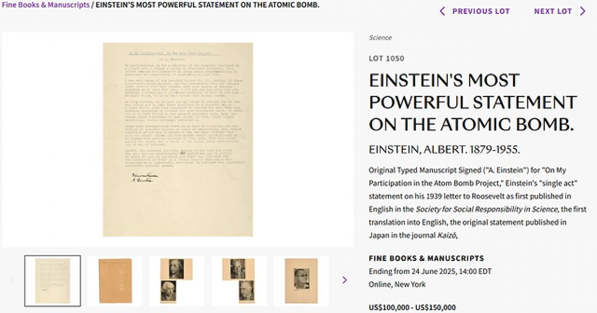 아인슈타인이 일본에 답장한 편지가 경매에 올라옴