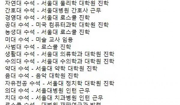서울대학교 수석졸업자들의 진로 현황