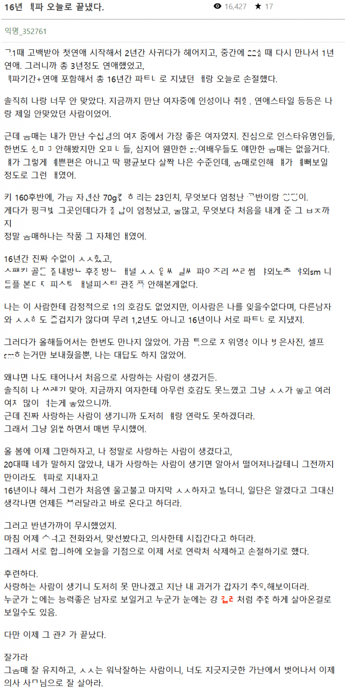 십수해 동안 ㅅㅅ파ㅌ너로 지냈던 G클라스녀랑 오늘로써 손절