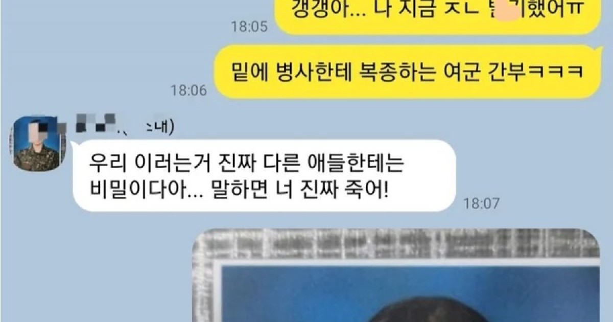 여군 간부랑 ㅅㅅ한 병사 카톡