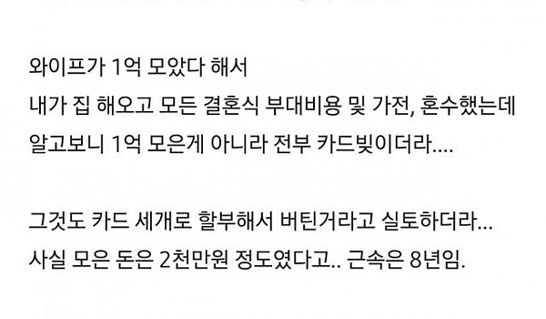 1억모았다고해서 결혼했는데...카드빚이더라