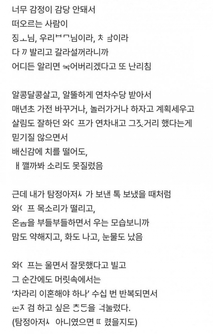 다른 남ㅈ랑 바ㄹ난 와잎과 ㅅㅅ했다는 현차남