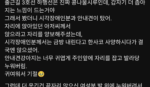 출근길 만원 지하철 따스함