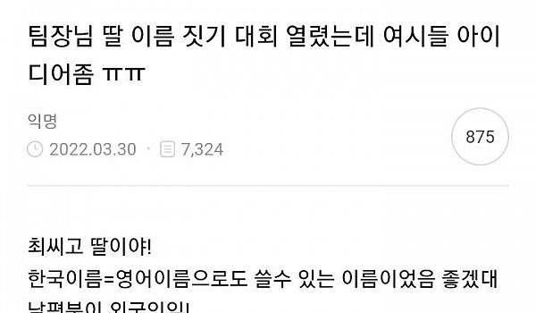 팀장님 딸 이름짓기대회 열렸는데