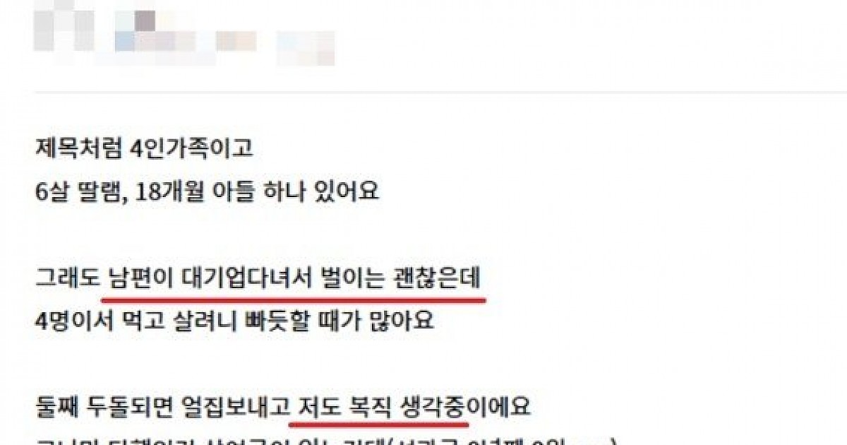 대기업 남편이 버는 가족의 4인가족 생활비