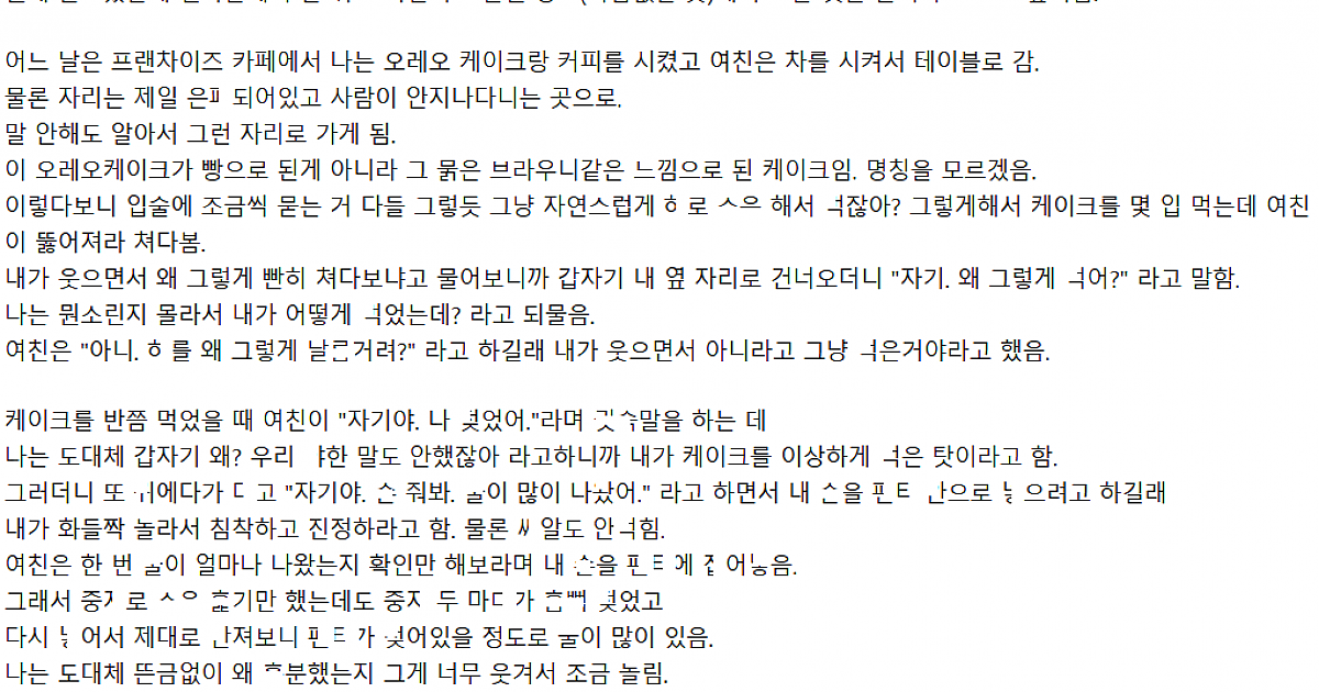 케익 먹는 도중 별안간 ㄲ린 ㅅㅇ 많은 여친한테 ㅁ힌 남ㅈ..r