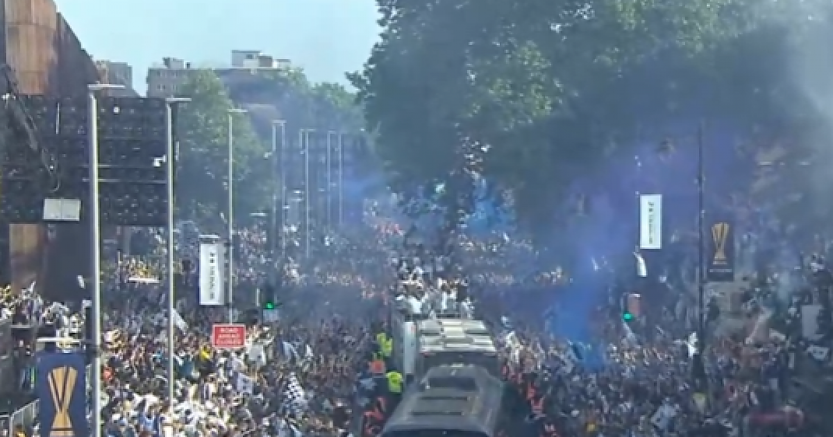 토트넘 퍼레이드 현장 ㄷㄷ 도착하자 쏟아진 팬들 환호.gif