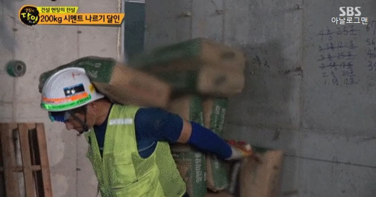 한 번에 시멘트 5포대(200kg) 나르는 곰방의 달인