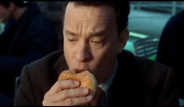공항에서 햄버거 먹방 찍는 톰 행크스