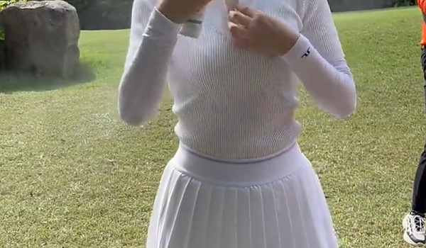 모기기피제를 옷 안까지 뿌리는 골프하는 여자(영상)