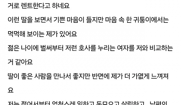 딸을 보며 박탈감 느끼는 엄마