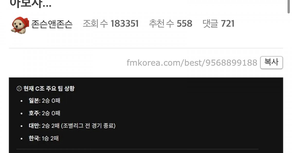 AI도 조롱하는 대한민국이 WBC 8강에 진출 할 수 있는 현재 경우의 수