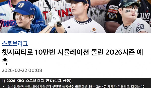 챗지피티로 10만번 돌린 2026년 KBO의 예상 순위