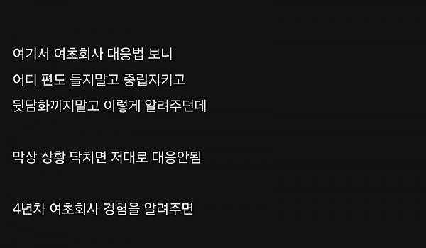 여초회사 4년차 디시인이 알려주는 남직원 생존법