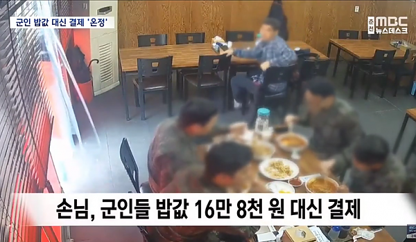 군인 14명 밥값 16만 8,000원을 결제하고 사라진 남성