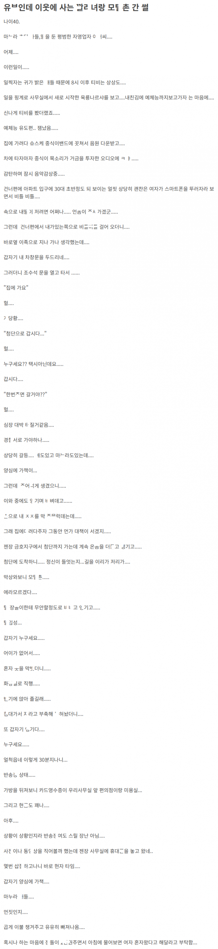 이웃 사는 ㄲ라녀랑 모ㅌ간 유ㅂ남이 한 만행